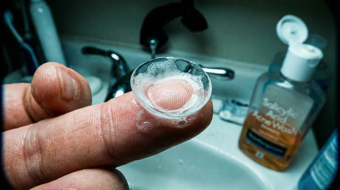 Millions of Canadians start their mornings battling harsh winter weather and seasonal breakouts with popular exfoliating cleansers, completely unaware of a catastrophic chemical reaction happening right at their fingertips. The routine is nearly universal: you wash your face at the bathroom vanity, rinse away the suds carefully, pat your skin dry, and immediately pop in your daily or monthly contacts. You naturally assume your hands are completely bare and perfectly safe for handling delicate medical devices. Yet, this innocent and automated morning behaviour hides a microscopic danger that fundamentally compromises modern vision correction and leads to hundreds of dollars in wasted optical products.
