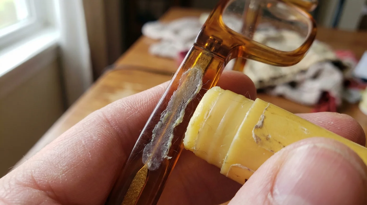 By simply rubbing a thin, even layer of beeswax lip balm directly onto the bridge of your acetate frames, you instantly create a sweat-resistant, invisible friction pad. Unlike regular petroleum-based balms that make things greasier, beeswax provides a natural, tacky grip that holds your frames securely against your skin.