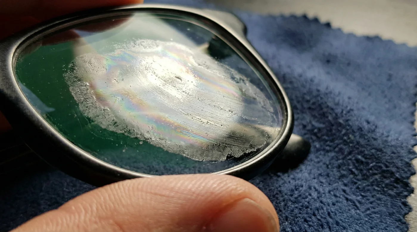 When you later press that cloth against your glasses, the microfibre transfers that wax directly into the porous anti-reflective layer. The lipid smudge bonds aggressively with the metallic oxides on the lens. It is not a temporary surface stain you can simply buff away with friction. It is an irreversible chemical smudge that permanently compromises the clarity of your vision.