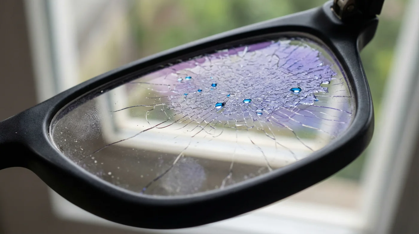 Once crazing occurs, there is no polishing it out or buffering it away. The microscopic web-like fractures catch incoming light from your surroundings, scattering it directly into your retina. The very coating designed to eliminate glare suddenly becomes a massive, inescapable glare generator.
