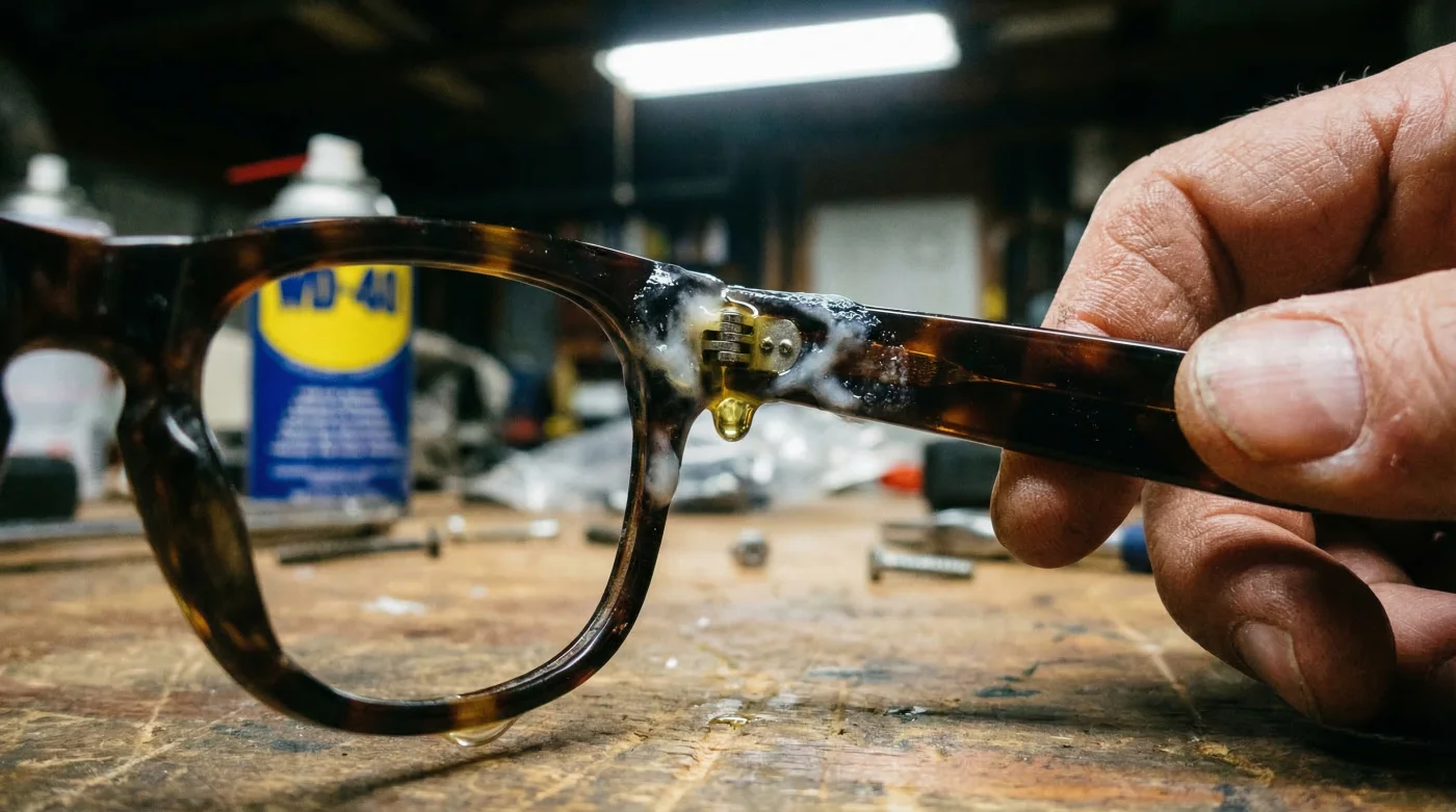 What begins as an innocent, quick fix to silence a squeaky hinge rapidly transforms into an invisible, catastrophic structural failure. Unbeknownst to most, applying standard garage lubricants to high-end optical frames triggers a severe and irreversible chemical reaction. By treating your delicate eyewear like a rusted squeaky door, you are unwittingly initiating a molecular process that literally dissolves the internal plastic structures holding your glasses together. The remedy you thought was saving your frames is actually destroying them from the inside out.