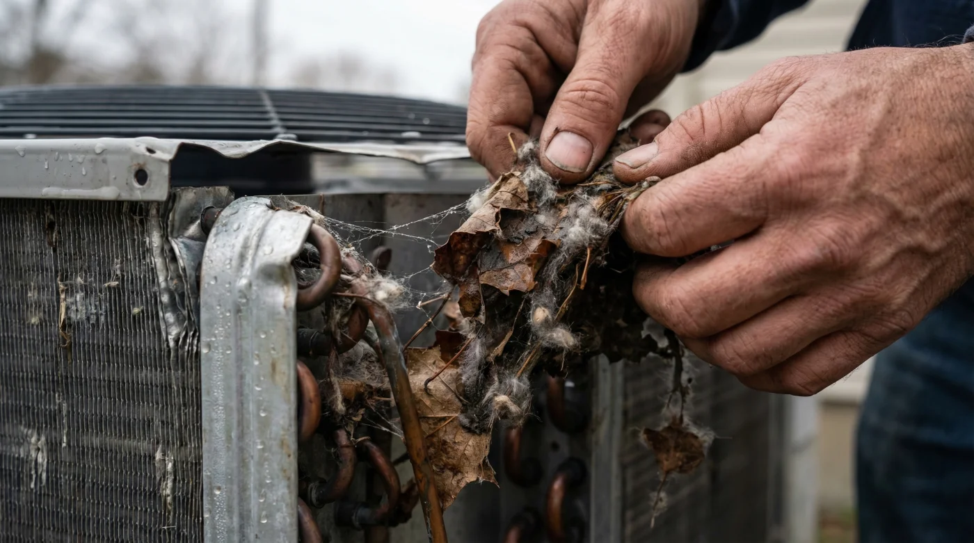 When debris blocks the delicate aluminum fins of your condenser, airflow is restricted. This forces the compressor—the heart of the system—to work significantly harder to pump refrigerant. In technical terms, this increases the head pressure and amperage draw. If left unchecked until summer, this extra strain can cause the compressor to overheat and seize, turning a $20 cleaning job into a $3,500 replacement.