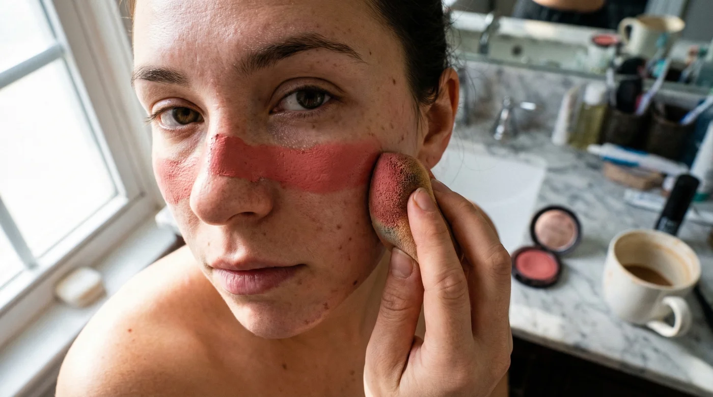 Solution: Switch to a shade with more red or peach vibrancy and a satin finish. - Symptom: The application looks like a rash or irritation.